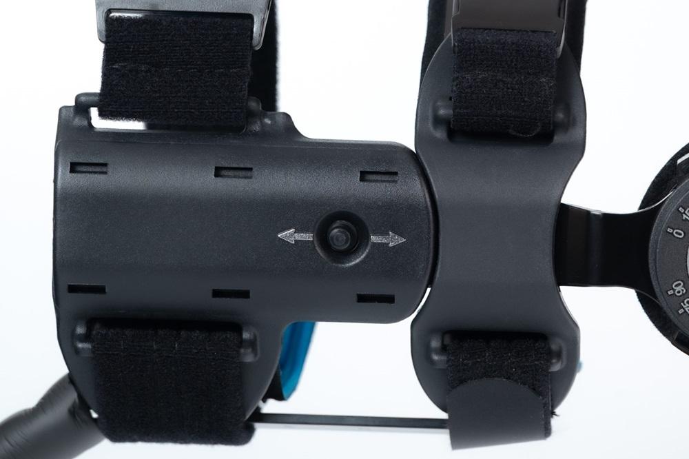 Precyzyjna regulacja ROM – zegar z blokadą co 15° pozwala dopasować zgięcie (0–105°) i wyprost (-15°–90°) do etapu rehabilitacji. Bezpieczne ograniczenie ruchu chroni więzadła i tkanki po zabiegu.